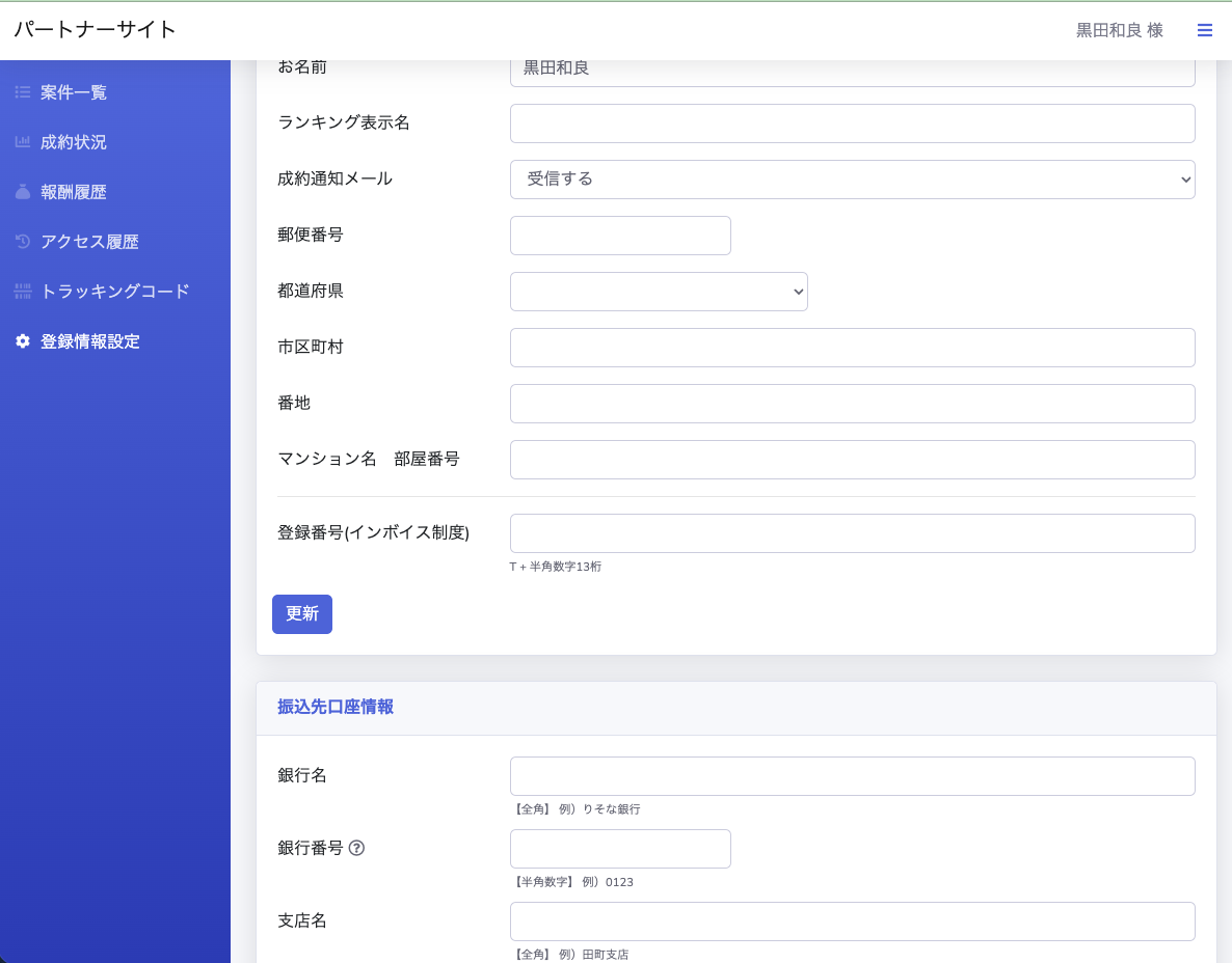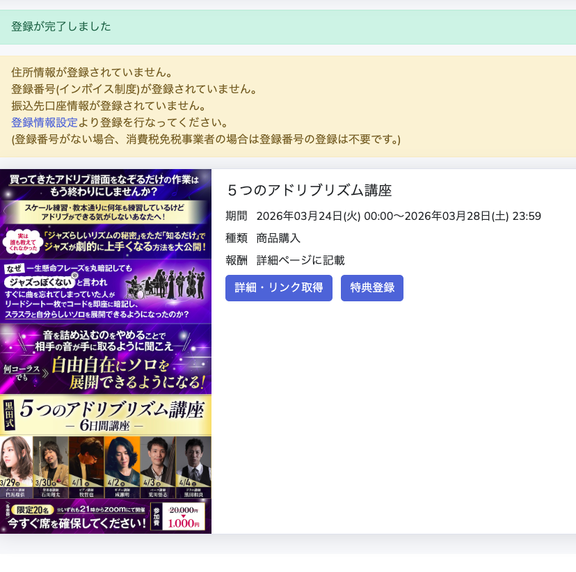 左のメニューから登録詳細設定がありますので、そちらで登録お願いいたします。