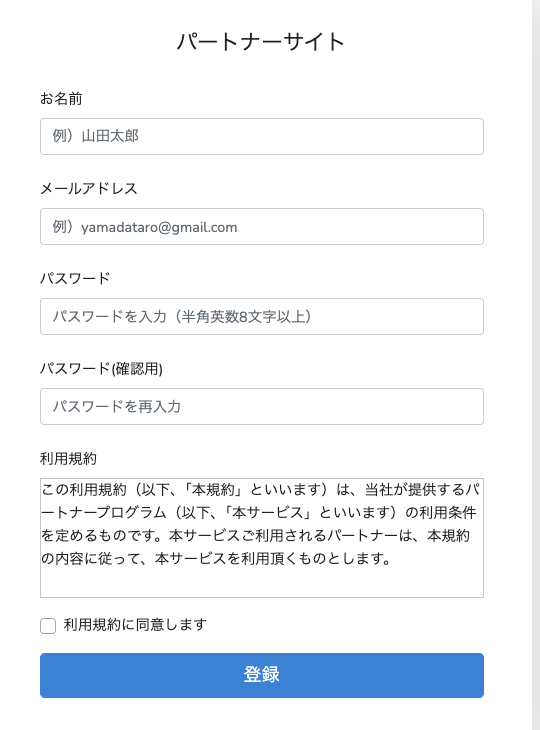 このフォームから登録